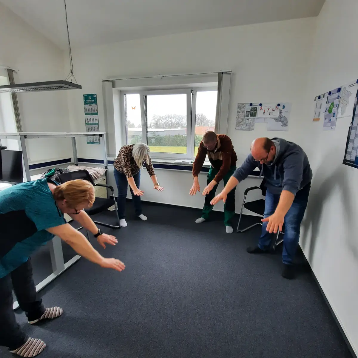 Unter dem Motto „Rückenstark im Arbeitsalltag“ zeigte die externe Fachkraft für Arbeitssicherheit der LWK Niedersachsen wirkungsvolle Ausgleichsübungen für Rücken, Schulter und Nacken – ideal für kurze Pausen im Arbeitsalltag oder abends zu Hause. Bei der Mitmachrunde waren alle gefragt.