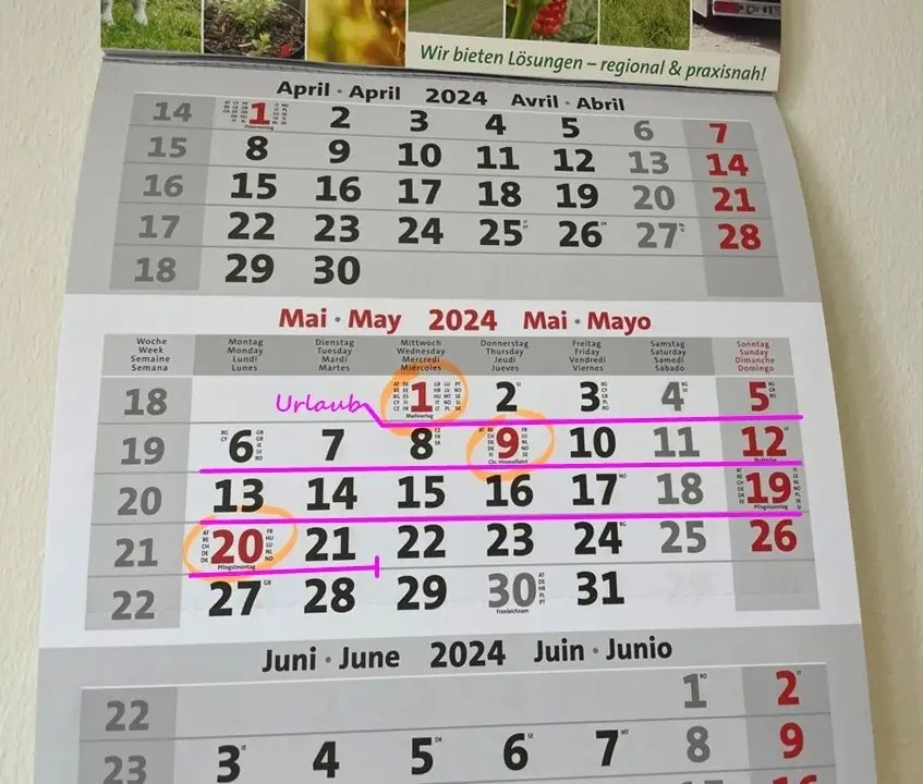 4 Tage Arbeit/Woche: 16 Urlaubstage