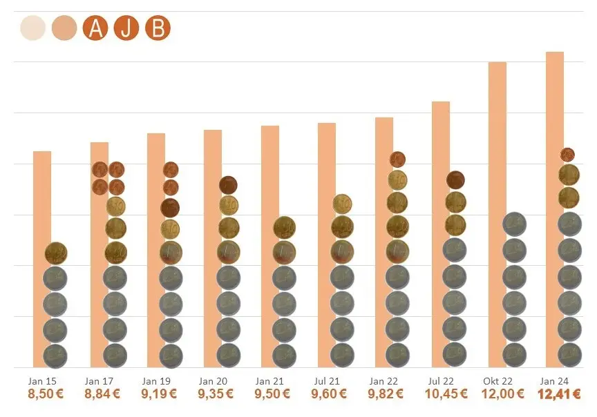 Der Mindestlohn wurde in 2015 mit 8,50 €/h eingeführt. Seitdem wurde dieser mehrmals angehoben. Die Mindestlohnkommission hat ihre Empfehlung für die Erhöhung des gesetzlichen Mindestlohns für die Jahre 2024 und 2025 beschlossen.